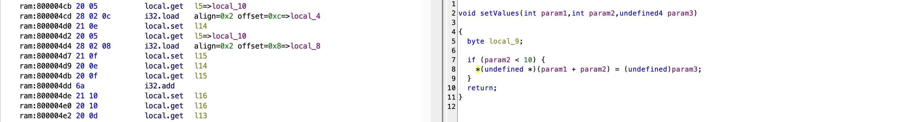 - e.g. 80004b4a 28 02 2c i32.load align=0x2 offset=0x2c
